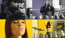 The campaign was well received by the British public. The commercial was uploaded to the video sharing website YouTube shortly after it was first broadcast, and was viewed over 500,000 times in the first week. By November 2007, it had been viewed over six million times across a large number of video sharing webhosts.[18] 70 Facebook groups appreciating the advertisement were set up[18] with one, named "We love the Cadbury's drumming gorilla", boasting 200 members.[2] A number of spoofs and parodies were quickly uploaded by amateurs with the tacit approval of Cadbury,[19] and the British branch of Wonderbra created and uploaded their own, Dan Cadan-directed version of the advertisement, replacing the gorilla with the Wonderbra model (and musician) Jentina[20] with the Cadbury strapline "A glass and a half full of joy" being replaced with "Two cups full of joy". While Cadbury tacitly permitted limited display and modification of the commercial without authorisation,[19] the Wonderbra spot was later removed from YouTube following notification from Phil Collins Limited that the piece infringed its copyright to "In The Air Tonight".[21] Gorilla was further parodied as an introduction to the second half of the 2007 Children in Need special, with an actor dressed as Pudsey Bear taking the central role.[22] The British comedy series The Mighty Boosh features a drumming gorilla named Bollo, played by Dave Brown, and the actor appeared as Bollo in a viral video[23] auditioning for the Cadbury advert to promote the third series of the show. This video was later included as an Easter egg on the DVD release of series three.