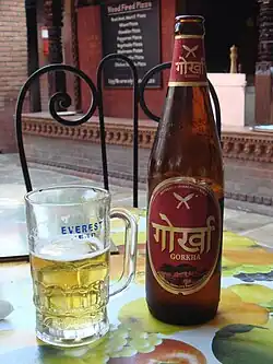 Gorkha Beer (Nepali: गोर्खा बीअर) is a brand of beer brewed in Nepal. It is a pale lager, brewed by Gorkha Brewery Ltd. and launched in May 2006. The alcohol content is listed in its label to be 5.0% alc/vol. It is one of the few beers produced in Nepal. The name derives from the Gurkha, people of Nepal.[1][2] Gorkha Brewery (P) Ltd. was established in 1989. It is owned by Nepalese Khetan group.
