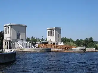 Gorky Reservoir (Russian: Го́рьковское водохрани́лище), known colloquially as Gorky Sea (Russian: Го́рьковское мо́ре), is an artificial lake in the central part of the Volga River in Russia,[1] formed by a hydroelectric dam of Gorky Hydroelectric Station (now called Nizhny Novgorod Hydroelectric Station) built in 1955 between the towns of Gorodets and Zavolzhye and filled in 1955 – 1957. It spans for 430 km from the dam of Rybinsk to the dam of Gorodets through Yaroslavl, Kostroma, Ivanovo and Nizhny Novgorod oblasts of Russia. While it is relatively narrow and follows the natural riverbed of Volga in the upper part, it becomes up to 16 km wide downstream the town of Yuryevets.
