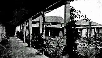 "There are chiefly single rooms each containing a wardrobe, dressing table, comfortable chair and a bed finished with a pretty eiderdown. There is a laundry (in which the copper fires are set up and cleared up by men) and electric irons. Beautiful verandahs surround a spacious sunny courtyard abloom with lovely flowers and front verandahs look over rolling green hills. The five sitting rooms are furnished with Chesterfields and easy chairs and many light chairs are available for the verandahs. There are no restrictions on the boarders whose only duties are to keep their rooms clean and tidy. They have all meals at the hostel."[10]