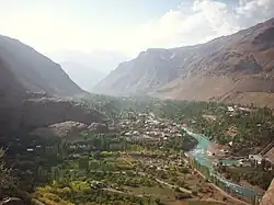 After the disintegration of the Soviet Union, the Ismaili development organization AKDN delivered supplies to Gorno-Badakhshan from Kyrgyzstan, which prevented the starvation of the population during the civil war.[25] While the AKDN itself frames this engagement as temporary measure, many of the inhabitants demand a permanent presence of humanitarian aid. Many see it as continuation from the provisioning of goods during the Soviet times.[26] This shared experience of Soviet and Ismaili development aid together with the neglect and crackdown by the Tajik state led to people perceiving themselves as Pamiri rather than Tajik.[27]