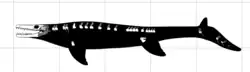 Goronyosaurus is an extinct genus of marine lizard belonging to the mosasaur family. Fossils of Goronyosaurus are exclusively known from the Late Maastrichtian of the Iullemmeden Basin in West Africa, specifically the Dukamaje Formation of Niger and Nigeria and Farin Doutchi Formation of Niger. The type specimen was first described in 1930 as Mosasaurus nigeriensis,[1] but subsequent remains revealed a highly unique set of adaptations that prompted the species to be reclassified as the only species of the new genus Goronyosaurus in 1972.[2] These unique adaptations have made Goronyosaurus notoriously difficult to classify within the Mosasauridae and it is often left out of phylogenetic analyses, although most authors agree that Goronyosaurus belonged to Mosasauridae.[3]