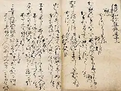 The Gosen Wakashū (後撰和歌集, Later Collection of Japanese Poems), often abbreviated as Gosenshū ("Later Collection"), is the second imperial anthology of Japanese waka compiled in 951 at the behest of Emperor Murakami by the Five Men of the Pear Chamber: Ōnakatomi no Yoshinobu (922-991), Kiyohara no Motosuke (908-990), Minamoto no Shitagō (911-983), Ki no Tokibumi (flourished ~950), and Sakanoue no Mochiki (flourished ~950). It consists of twenty volumes containing 1,426 poems.