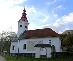 The local church is dedicated to Saint Andrew. The exterior features several frescoes,[2] including a 14th-century depiction of Saint Christopher.[3]