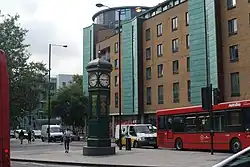 Goswell Road, in Central London, is an end part of the A1. The southern part ends with one block, on the east side, in City of London; the rest is in the London Borough of Islington, the north end being Angel. It crosses Old Street/Clerkenwell Road. In the north it splits Clerkenwell from Finsbury;[1] the south was sometimes used as a demarcator but all but the southern corporate/legal/financial end in the modern era forms the heart of the highly developed mixed-use district Barbican.