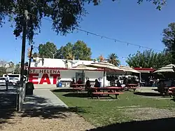 The restaurants embrace a California-casual cooking style, featuring microbrewed beer and wines alongside chili cheese dogs and mini corn dogs.[5] In 2004, a second Gott's opened in the Ferry Building Marketplace in San Francisco, and in 2007, a third opened in the Oxbow Public Market of Napa.[6] The St. Helena spot is a drive-in, with seating at red picnic tables on the lawn, while the other two locations are built in an urban, retro diner-style. In 2013, a fourth location opened in Palo Alto.[7] The newest Gott's Roadside location is now open in Greenbrae in Marin County. The company remains privately owned.