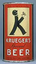 In 1933, Krueger was the first company to produce beer in cans, thanks to a partnership with American Can Company. This was a big risk, so American Can offered to install the equipment for free and Krueger would only pay for it if the plan was successful. An initial test run of 2,000 cans filled with the 3.2% product were labeled "Krueger's Special Beer" and provided to brewery employees and friends of the brewery for evaluation. The enthusiastic reception encouraged them to release canned versions of their full strength Krueger's Cream Ale and Krueger's Finest Beer brands to the public on January 24, 1935. These cans were initially shipped to Richmond, Virginia, the farthest point of Kreuger's distribution area, in case the experiment failed. [5][6] Other canned products soon followed, including Krueger's Bock and Kent India Pale Ale.