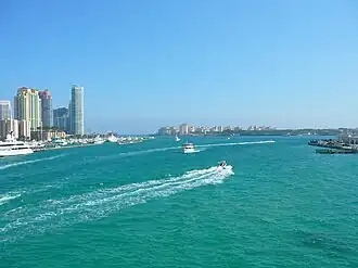 Government Cut is a manmade shipping channel between Miami Beach and Fisher Island, which allows better access to the Port of Miami in Miami, Florida. Before the cut was established, a single peninsula of dry land stretched from what is now Miami Beach to what is now Fisher Island, and boats destined for the port at the mouth of the Miami River had to pass around Cape Florida, to the south of Key Biscayne.