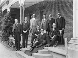 Due to the First World War and the adverse post-war economic conditions that prevailed in its immediate wake, the federal government did not move to Canberra from Melbourne until 1927. It was only at this time that the governor-general began to use Yarralumla as his official seat, albeit on a limited basis at first. However, the Federal Cabinet did meet at Government House (then known as Yarralumla House) on 30 January 1924, on that occasion chaired by the acting Prime Minister, Earle Page.[5][6] This was still three years before the opening of Parliament House and Canberra becoming the National Capital. Between 1927 and 1930 the governor-general continued to live principally at Melbourne's Government House, residing at Yarralumla only during those periods of the year when the Parliament of Australia was sitting. In 1930, Melbourne's Government House was finally returned to the Victorian State Government for use by the Governor of Victoria.