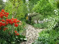 The "Wild Garden" or "English Garden" was laid out by Lady Gowrie, and includes a memorial to Patrick Hore-Ruthven, the only surviving son of governor-general Lord and Lady Gowrie, who was killed in the Second World War. The design of this garden was influenced by the work of Edna Walling and Paul Sorenson. Other gardens have been laid out by successive governors-general and their spouses. The lakeside lawn and terraces, for instance, were developed at the time Lake Burley Griffin was filled with water in the early 1960s, during the vice-regal tenure of Lord De L'Isle. Further developments to the terraces were undertaken during the term of Sir Ninian Stephen in the 1980s.