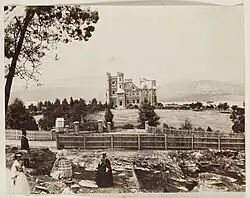 Work eventually started in 1855 on a hill of the 37-acre (150,000 m2) grounds that overlooks the Royal Tasmanian Botanical Gardens and the Derwent estuary. Sandstone was quarried on site (the excavated holes were made into ornamental pools), cedar and teak were recycled from an old ship, and slate for the roof was imported from Wales. Furniture was imported from London. Construction was completed in 1857