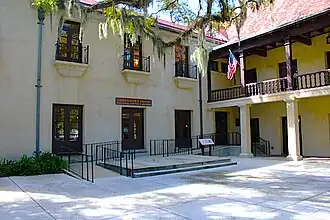 In 1870, a man by the name of John L. Wilson began negotiations with the government in order to operate a free public library in two rooms of the U.S. Customs House.[12] The governor's house officially became home to the oldest library in Florida when Wilson was granted permission in 1874. After twenty-one years, the library eventually moved to a larger space in 1895 at the Wilson's new property located at 12 Aviles Street, St. Augustine, Florida (known as the Segui-Kirby Smith House).[12]