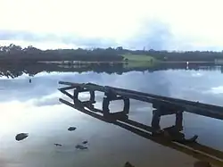 The finger jetty had a T-shaped head was constructed using timber pylons and decking with iron fastenings. It is currently in a poor condition[2] with the last 10 metres (33 ft) having been lost apart from parts of two pylons.