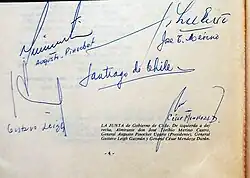 The Government Junta of Chile (Spanish: Junta de Gobierno de Chile) was the military junta established to rule Chile during the military dictatorship that followed the overthrow of President Salvador Allende in the 1973 Chilean coup d'état.[1][2] The Government Junta was the executive and legislative branch of government until 17 December 1974, when Augusto Pinochet was formally declared President of Chile.[3] After that date, it functioned strictly as a legislative body until the return to democracy in 1990.