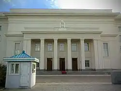 The Government Palace (Mongolian: Засгийн газрын ордон, romanized: Zasgiin gazriin ordon), also known as the State Palace, is located on the north side of Sükhbaatar Square in Ulaanbaatar, Mongolia. It houses various state organs such as the State Great Khural (unicameral parliament) and offices of its members, as well as the offices of the President and Prime Minister. It is sometimes referred to by Ulaanbaatar residents as the Saaral Ordon ('Gray Palace') due to the exterior's former color, which was eventually painted white in 2007.