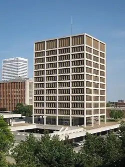 In 1917, Tulsa government offices moved into a much larger facility at Fourth and Cincinnati, formally called the Tulsa Municipal Building, to house city services. This served the city until the 1960s, when the Civic Center building was opened.[10] The Municipal Building was listed on the National Register of Historic Places under Criterion C on July 18, 1975. Its NRIS number is 75001574.[11]