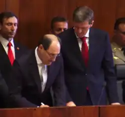 The province formed a legislative power, whose approved projects were submitted to the president.[124][125] The 1834 Additional Act sought to regulate the relations between the legislative and the executive; the president could return (veto) to the legislature projects that he considered "inconvenient" and "unconstitutional". If it was classified as unconstitutional, it was submitted to the imperial government and to the General Assembly for deliberation; if inconvenient, the veto could be overturned by a vote of two thirds of the legislators.[126][127] In addition, it was possible for the president to postpone legislative sessions, sometimes leading to the postponement of the budget deliberation.[125] The deputies were elected by the people, and the provincial presidents acted as electoral agents for members of their cabinets.[111] The president and the legislators did not always coexist harmoniously; in 1889, the deputies approved a motion asking the imperial government to dismiss President Galdino Pimentel, which occurred a few days later.[128] These conflicts were more frequent when the president of the province belonged to a different party from the majority of the deputies.[129]