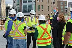 In September 2017, Baker, joined by Massachusetts U.S. Senators Elizabeth Warren and Ed Markey, Massachusetts U.S. Representative Stephen F. Lynch, as well as officials from the U.S. Army Corps of Engineers, the International Longshoremen's Association, the Massachusetts Port Authority, and other local elected officials, announced the beginning of a $350 million dredging project to expand Boston Harbor to accommodate larger ships.[93]