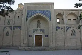 Govkushon madrasah is an architectural monument (XVI century) in Bukhara, Uzbekistan. Madrasah built by Khojabor Khojas. It is part of Khoja Gaukushan Ensemble. It is an object of cultural heritage of Uzbekistan. The madrasah building of Khoja-Govkushon architectural ensemble was built in the historical center of Bukhara (Uzbekistan) in 1562-1565 during Shaybani ruler Abdulla Khan II at the expense of Khoja Saad, the sheikh of Dzhoybor. Khoja Sa'd is known by the nickname "Khoja Kalon", which is reflected in this name complex.