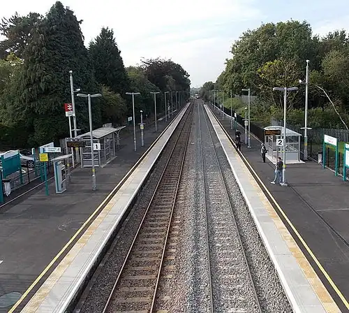 Gowerton railway station (originally Gower Road and later Gowerton North) serves the village of Gowerton, Wales. It is located at street level at the end of Station Road in Gowerton, 219 miles 45 chains (353.4 km) from the zero point at London Paddington, measured via Stroud.[1] The station is unstaffed but has a ticket machine, shelters on each platform and live train running information displays.