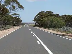 Goyder Highway starts from the Augusta Highway at Crystal Brook running east then southeast. It is briefly concurrent with Horrocks Highway near Gulnare, RM Williams Way near Spalding and Barrier Highway near Burra.[3] The highway descends from the Mount Lofty Ranges onto the plains of the Murray–Darling basin. It passes the end of Thiele Highway at Morgan and continues upstream on the north side of the Murray River to meet Sturt Highway between Barmera and Monash.[3]