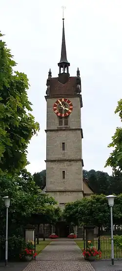 The Reformed Church was built from 1661 to 1663 on the site where the previous church had collapsed. It is one of the main works of Protestant church building in the canton of Aargau, and is listed as a heritage site of national significance.[6]