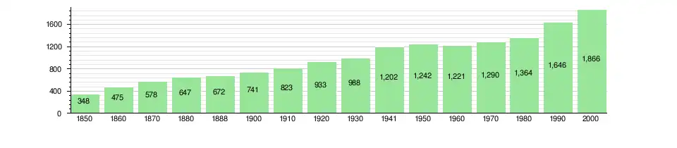 Grône has a population (as of December 2020) of 2,485.[6] As of 2008, 16.4% of the population are resident foreign nationals.[7] Over the last 10 years (2000–2010 ) the population has changed at a rate of 14.6%. It has changed at a rate of 13.9% due to migration and at a rate of 1.6% due to births and deaths.[8]