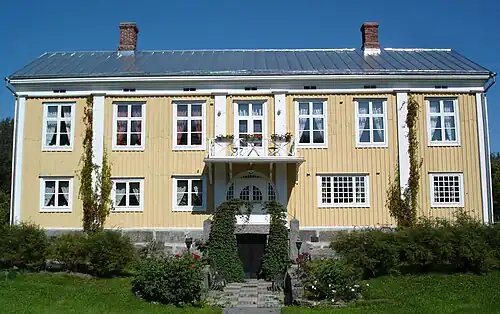 Grönvik gård (Eng. The Mansion of Grönvik) is a mansion in the village of Grönvik, Korsholm municipality in Western Finland.[1][2] The house is in Swedish mansion style.[3] Its shell is made of logs and the facade of wooden deals, on top of birch bark.[2] It remains on the same location as where it was built.[1] The year of construction and first owner of the mansion are not known, though it is assumed that it was built around 1780, for an associate judge of appeal in Vaasa, Johan Casimir de la Chapelle.[1][2] However, it might have built by master builder Johan Johansson Kallinen (Kallis), who was registered in Iskmo 1791–1802 (although he probably stayed there still in 1804–1805).[1] Both of them owned land of the hide on which the mansion lies.[1][3] The original appearance of the house is unknown too, however, it is thought that the house was originally in one floor, with the current second story possibly added in 1812.[1][2]