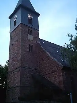 The oldest structure in the village is the romanesque church tower of the parish church of St. Lucia, which dates from the 12th or 13th century. The nave of the church was renovated in 1781–82 by church council builder Wilhelm Friedrich Goez from Ludwigsburg.