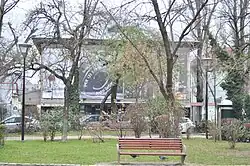 At the northern entrance of the park, a statue of George C. Cantacuzino-Râfoveanu, made by French sculptor Ernest Henri Dubois, was inaugurated in 1904.[5] A female character is at the base of the statue, holding a tablet with her left hand; the feather she was holding in her right hand has since disappeared.[8] At the southern edge of Grădina Icoanei is the bronze bust of Adrian Păunescu, a poet who lived near the park; the bust, made by the sculptors Ioan Deac-Bistrița and Dragoș Neagoe, was inaugurated in 2012.[9]