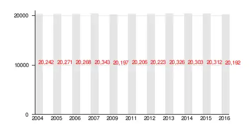 According to the Central Statistical Office data, the district's area is 23.82 square kilometres (9.20 square miles) and 20 303 people inhabit Wzgórza Krzesławickie.[2]