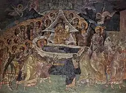 In the church three kinds of painting can be discerned. The earliest is found in the nave, whereas two later ones can be recognized in the narthex. The frescoes were painted in 1321–1322. The painting works have been well preserved. The compositions in the nave deal with the earthly life of Jesus and the ecclesiastical calendar.[7]