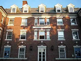 Grace Hopkinson Eliot Hall, often called Eliot Hall, is a historic dormitory building on the Radcliffe Quadrangle of Harvard University in Cambridge, Massachusetts. The four story neo-Georgian brick building was built in 1907 to a design by Alexander Wadsworth Longfellow Jr. It is a duplicate of Bertram Hall, which is adjacent, except some of its architectural details were simplified to reduce costs. The house is named in honor of Grace Hopkinson Eliot, the wife of Harvard President Charles W. Eliot.[2] The building is now one of the dormitories of Cabot House.[3]