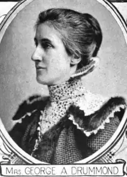 Julia Parker Drummond was the first president of Montreal's branch of the Canadian Council of Women (1893-1899), and helped to found the Montreal branch of the Victorian Order of Nurses in 1899. She was president of the city's Charity Organization Society from 1911 to 1919. She was director of the Woman's Historical Society, and she served as an advisor to the Parks and Playgrounds Association of Montreal.[2] She "lent her aid ungrudgingly to every movement for the betterment of her sex," including women's suffrage.[3]
