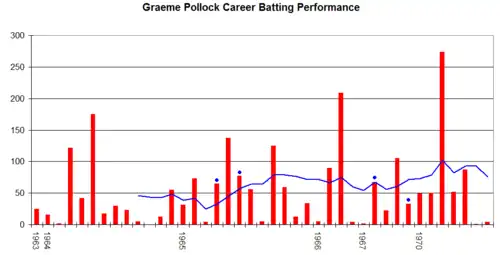 - ^ "Statsguru — RG Pollock — Test matches — Batting analysis". Cricinfo. Archived from the original on 27 May 2012. Retrieved 6 November 2008.