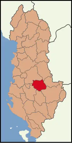 Gramsh District (Albanian: Rrethi i Gramshit) was one of the 36 districts of Albania, which were dissolved in July 2000 and replaced by 12 counties. It had a population of 35,723 in 2001, and an area of 695 km2 (268 sq mi).[1] It is in the centre of the country, and its capital was the town of Gramsh. The area of the former district is coextensive with the present municipality of Gramsh, which is part of Elbasan County.