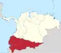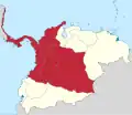 Gran Colombia (Spanish pronunciation: [ˈɡɾaŋ koˈlombja] ⓘ, "Great Colombia"), also known as Greater Colombia and officially the Republic of Colombia (Spanish: República de Colombia), was a state that encompassed much of northern South America and parts of Central America from 1819 to 1831. It included present-day Colombia, mainland Ecuador (i.e. excluding the Galápagos Islands), Panama, and Venezuela, parts of northern Peru, northwestern Brazil, and claimed the Essequibo region. The terms Gran Colombia and Greater Colombia are used historiographically to distinguish it from the current Republic of Colombia,[4] which is also the official name of the former state.