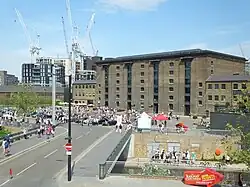 Granary Square is a large open space in the London Borough of Camden. Comparable in size to Trafalgar Square,[1] it is part of the larger King's Cross Central development. It has been cited as an example of a privately owned public space in London.[2] The new Central Saint Martins complex is adjacent. Visitor attractions in the square include Queer Britain, the UK's first dedicated museum of LGBT history and culture.