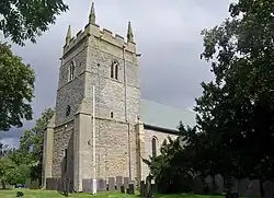 Parts of the All Saints' parish church date back to the 12th century. It is a Grade I listed building, "one of the S Notts churches which were reduced in size in post-Reformation times."[8] According to the English Heritage description, it stands on a pre-Conquest site and underwent restoration about 1777 and in 1888.[9] A Roman altar stone was dug up in the churchyard in 1812.[10]