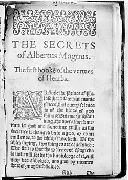 The Grand Albert is a grimoire that has often been attributed to Albertus Magnus. Begun perhaps around 1245, it received its definitive form in Latin around 1493, a French translation in 1500, and its most expansive and well-known French edition in 1703. Its original Latin title, Liber secretorum Alberti Magni de virtutibus herbarum, lapidum et animalium quorumdam, translates to English as "the book of secrets of Albert the Great on the virtues of herbs, stones and certain animals". It is also known under the names of The Secrets of Albert, Secreta Alberti, and Experimenta Alberti.