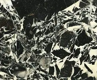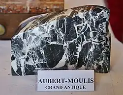 Grand Antique marble (also Celtic marble (Latin: marmor celticum), Grand Antique of Aubert, and known in Roman times as Marmor Aquitanicum), is a prestigious marble, composed of clasts of black limestone and white calcite, quarried near Aubert-Moulis in France. The fault breccia from which it is extracted was formed at the end of the Cretaceous period, following the corrugation that affected the Northern Pyrenean area about 65 million years ago.[1]