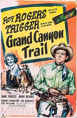 Grand Canyon Trail is a 1948 American Western film starring Roy Rogers combining Western action with Three Stooges-style slapstick. Robert Livingston plays the head villain and James Finlayson plays the sheriff. The Republic Pictures film was shot in Trucolor, but only black and white prints survive.
