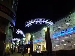 It was announced in February 2007 that the complex was to be redeveloped by then owners Targetfollow, at an estimated cost of £100 million.[11] The development was to have been completed by 2010. The proposals were designed as a part of Stockport Council's 'Future Stockport' masterplan.[12] The redevelopment plans have been put on hold following the financial crisis, as of 2010 development has not commenced.[13] The redevelopment plans include construction of a multi-storey car park, adding of a more significant retail element to the complex and a Travelodge hotel.[3] In total the redevelopment will add 400,000 sq ft (37,000 m2) to the scheme and nearly triple the car parking spaces to 1,500. It will also include 200 residential apartments and improved public spaces.[2] The planning application was submitted in July 2007.The planning application was successful and outline planning permission for the entire scheme was granted.[12]