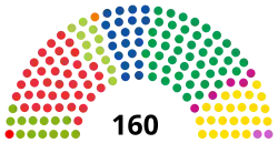 It consists of 160 members (as of 2006) elected by proportional representation for a four-year term of office. The French-speaking part of the canton, the Bernese Jura (districts of Courtelary, La Neuveville and Moutier) has 12 seats guaranteed, and 3 seats are guaranteed for the French-speaking minority of the bilingual district of Biel/Bienne.