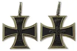 The Grand Cross of the Iron Cross (German: Großkreuz des Eisernen Kreuzes) was a decoration intended for victorious generals of the Prussian Army and its allies. It was the second highest class of the Iron Cross, following the Star of the Grand Cross of the Iron Cross, which was awarded only twice. Along with the Iron Cross 1st and 2nd Class, the Grand Cross was founded on 10 March 1813, during the Napoleonic Wars. It was renewed in 1870 for the Franco-Prussian War and again in 1914 for World War I. In 1939, when Adolf Hitler renewed the Iron Cross as a German (rather than strictly Prussian) decoration, he also renewed the Grand Cross.