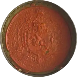 The preservation of the Great Seal of Lithuania (pictured, dating to 1623) when concluding the Union of Lublin meant that the elected monarchs acts without being confirmed with the Lithuanian seals were void in Lithuania. These Lithuanian seals were in possession of the Lithuanian Grand Chancellor (Great Seal) and Lithuanian Vice-Chancellor (Lesser Seal).[85][86][87]