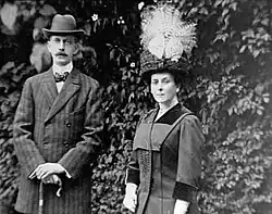 Since childhood, Paul was very attached to his brother Sergei, their closeness remaining even after Sergei's engagement and later marriage to Princess Elisabeth of Hesse and by Rhine (1864–1918).[3] Paul accompanied the couple to England to meet Elisabeth's British grandmother, Queen Victoria, who was favorably impressed by Paul.[3] After Sergei's marriage, Paul moved in with his brother and his new sister-in-law, who also became very close to him.[3] The trio shared the same household for some time, and they made a trip together to Jerusalem in 1888.[12] Grand Duke Paul suffered from weak lungs and spent periods abroad to recuperate.[7] On medical advice, he visited Greece in 1887.[12][13]