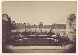 Even so, the Louvre Museum was cramped and lacked any space for modern facilities such as reserves, educational spaces, shops, restaurants and cafés, not to mention security screening, cloakrooms or washrooms. Its exterior spaces had also deteriorated from their heyday during the Second French Empire, and had never been remodeled after the destruction of the Tuileries Palace in the 1870s had fundamentally altered the logic of their arrangement. In the central courtyard, the two octagonal gardens were poorly maintained and surrounded by the parking lots for Finance Ministry employees (to the north) and museum staff (to the south).[1] Because of lack of parking space in the vicinity, unsightly tourist buses were permanently stationed along the southern side of the palace.