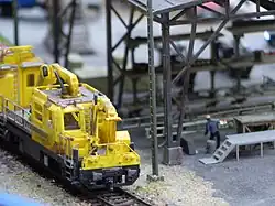 To optimize the traffic on the layout, it was built in many levels using more than 2,500 m (8,200 ft) of rails and 452 switch boxes. The total number of rolling stock is more than 2700, of which 250 are locomotives and 10 are special cleaning trains. The variety of the moving trains is created using two revolver exchangers that store up to 60 trains and dispatch them when needed. On the layout there are also two turntables which can turn the locomotives up to 180 degrees. The largest height difference in the model is 1 m (3 ft 3 in). This is achieved with over 50 m (160 ft) of spiral lifts.