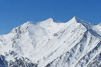 ![]() Winter view of Gran Queyron with Cima Frappier to the right and punta Raisin on the left | |